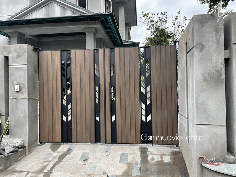 - Bộ cổng được sản xuất cứng cáp với lõi bên trong các ô gỗ đều có xương thép với khoảng cách 25cm, ngoài ra gỗ nhựa là chất liệu composite nên độ cứng của gỗ cũng cao chịu được các va đập thông thường